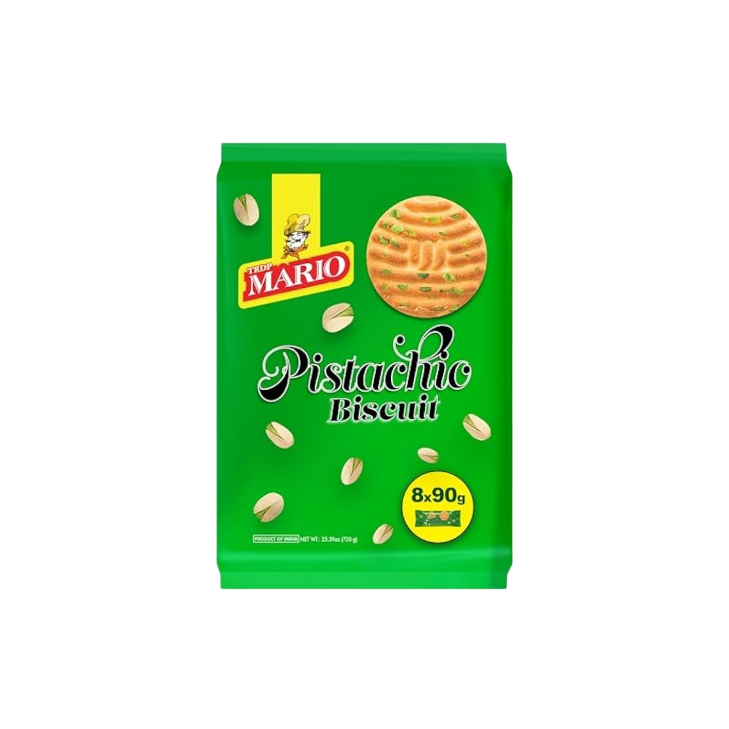 Mario Pistachio Biscuits (720g) are rich, crunchy biscuits studded with crunchy pistachio pieces. With a nutty flavor and satisfying texture, they make a delicious snack or tea-time treat.
