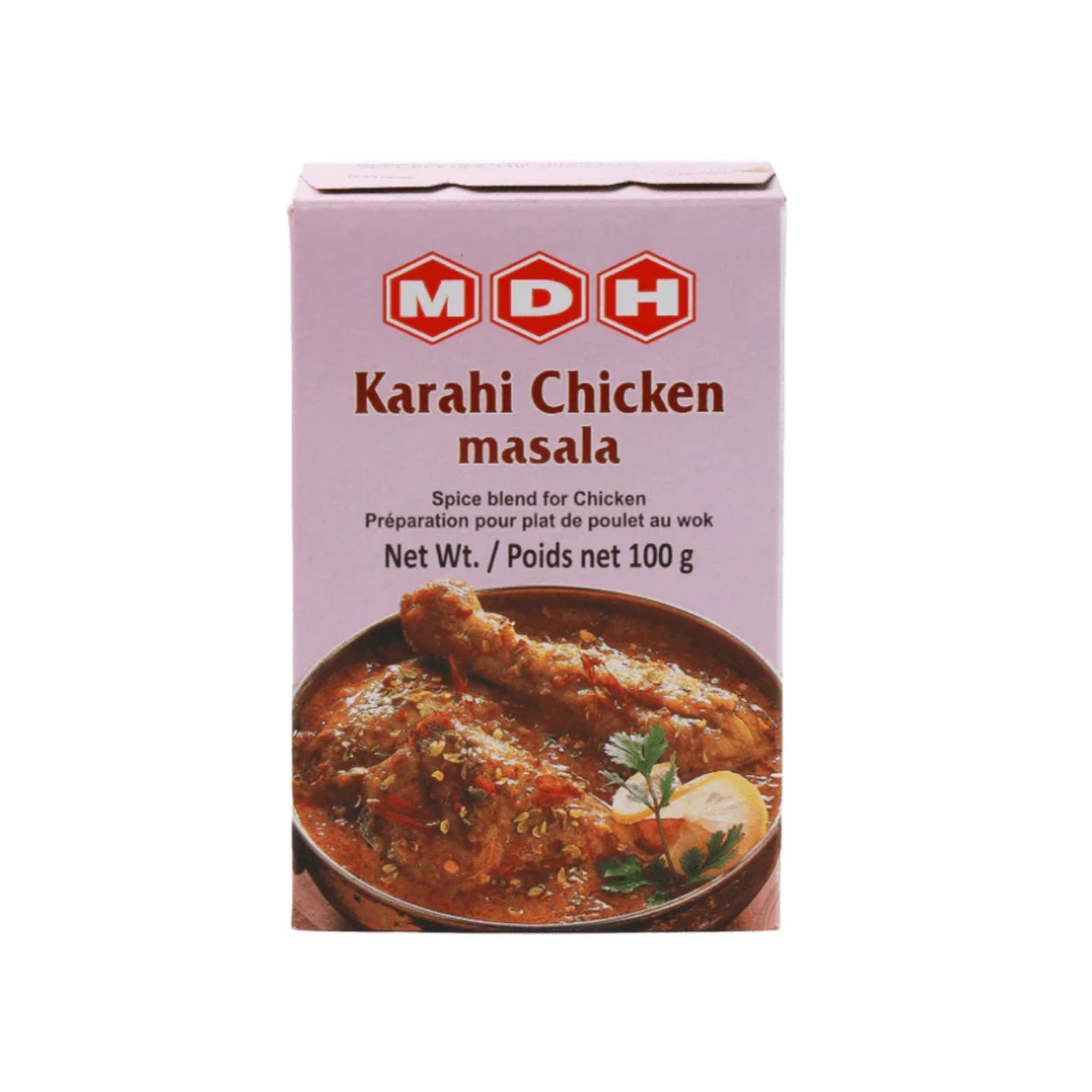 MDH Karahi Chicken Masala 100g is a flavorful spice blend crafted to bring out the authentic taste of traditional karahi-style chicken. Made with a perfect mix of aromatic spices, it adds a rich aroma, vibrant color, and delicious flavor to your curry. Conveniently packed in 100g to ensure freshness, MDH Karahi Chicken Masala helps you prepare a mouthwatering, restaurant-style karahi chicken right at home.