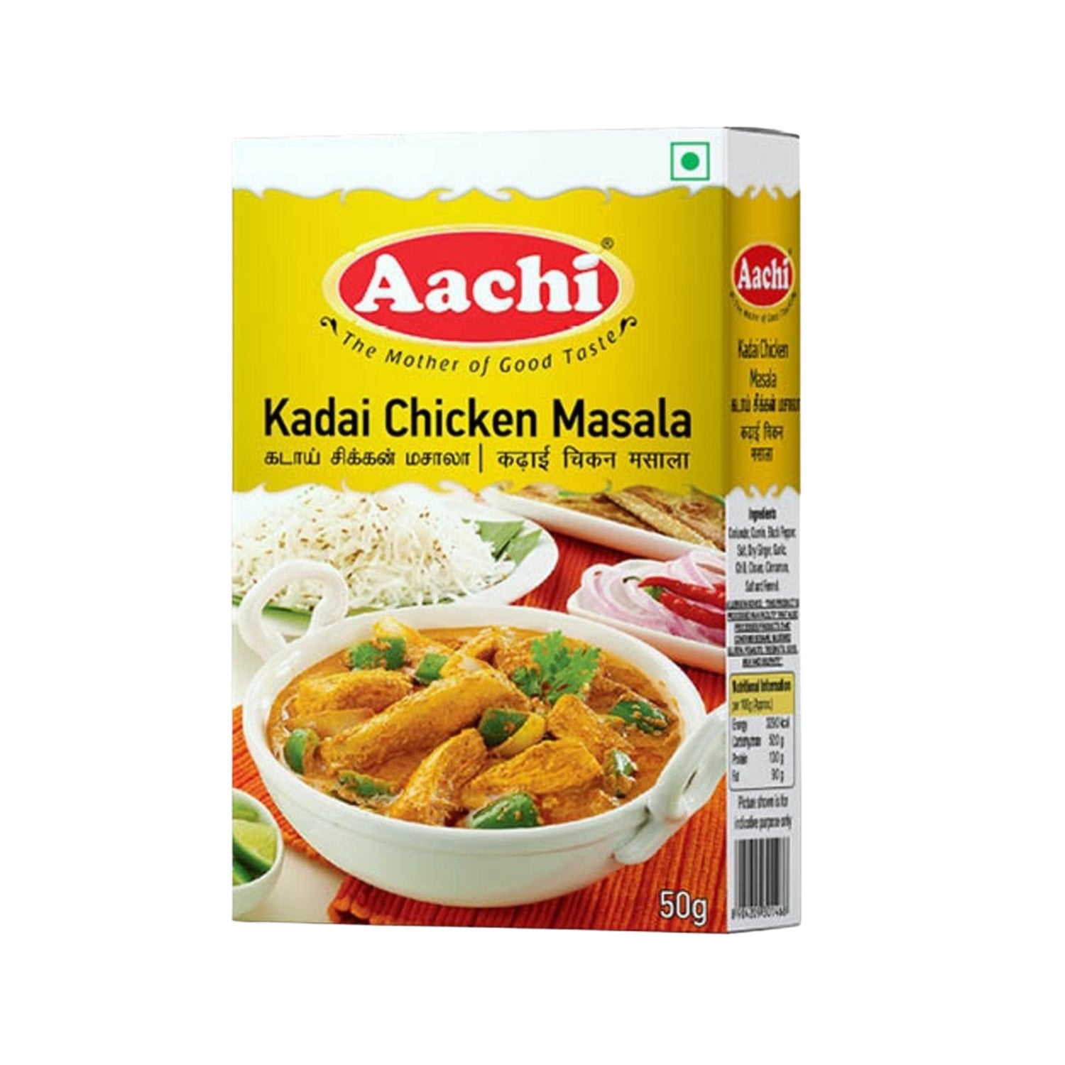 Aachi Kadai Chicken Masala 50g is a delicious blend of spices specially crafted to bring out the authentic taste of kadai-style chicken. With its rich aroma and perfectly balanced flavors, this masala enhances your curry, making it thick, flavorful, and irresistibly tasty. Packed in a 50g pack to ensure freshness, Aachi Kadai Chicken Masala helps you recreate the traditional restaurant-style kadai chicken right at home.