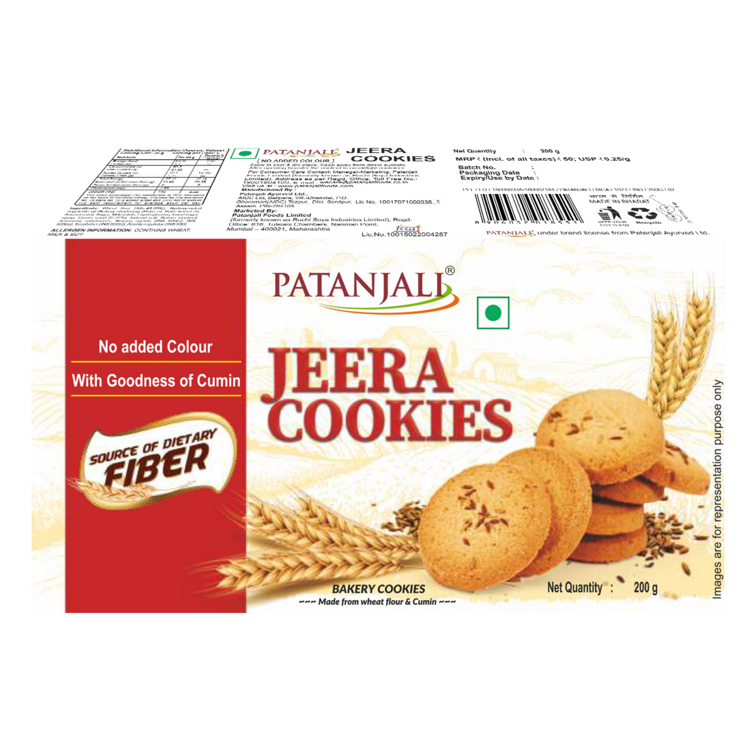 Patanjali Jeera Cookies 200g are flavorful, crunchy biscuits infused with the warm aroma of cumin. Made with quality ingredients, they offer a perfect balance of sweetness and spice. Ideal for tea-time snacking and a delicious alternative to regular cookies.